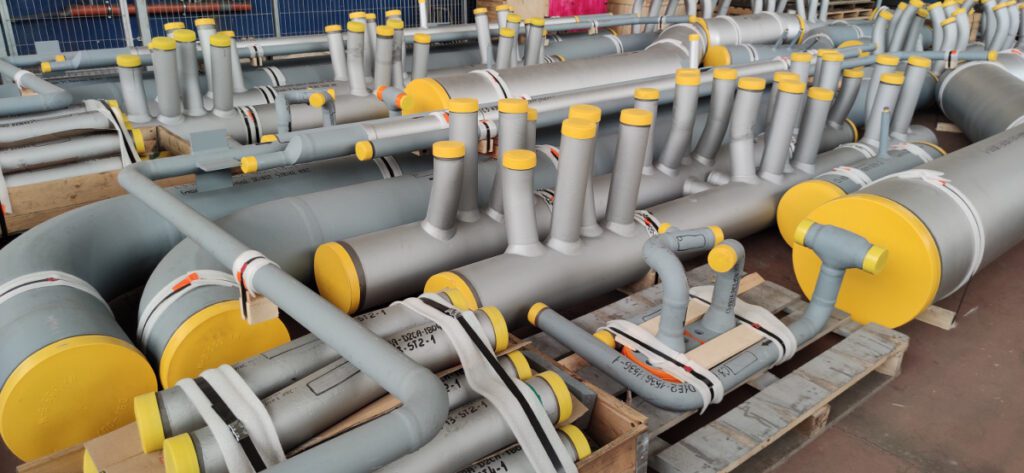 Pressure pipelines are manufactured in accordance with the standards PN-EN 13480, PN-EN 12952, supervisory regulations UDT and TÜV or other technical specifications.